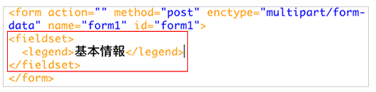 <legend>タグの次の部分に「テキストフィールド」などの入力フォームタグを追加して「フィールドセット」でグループ化されたフォームを作成します。